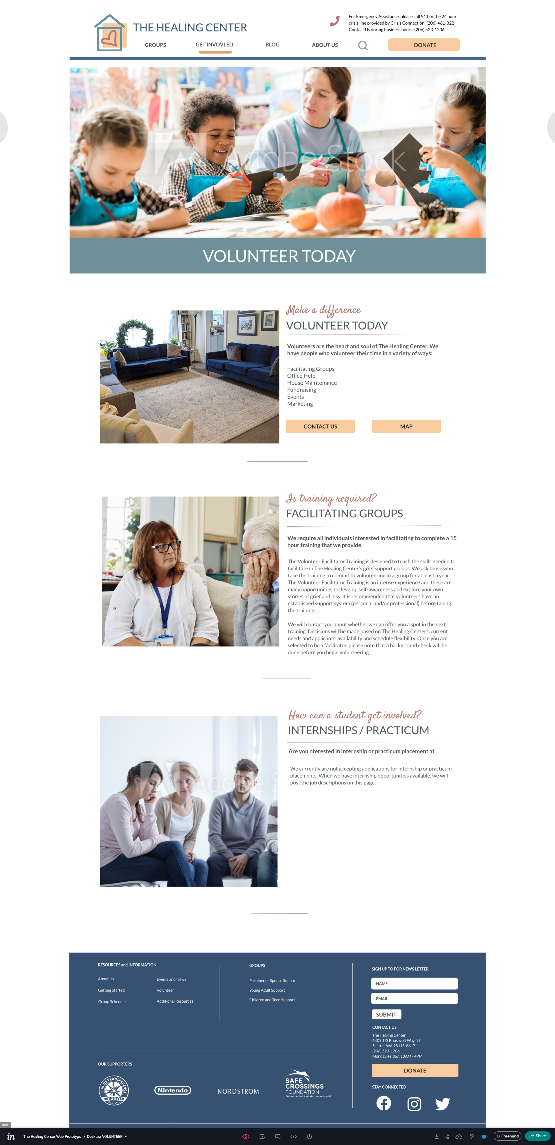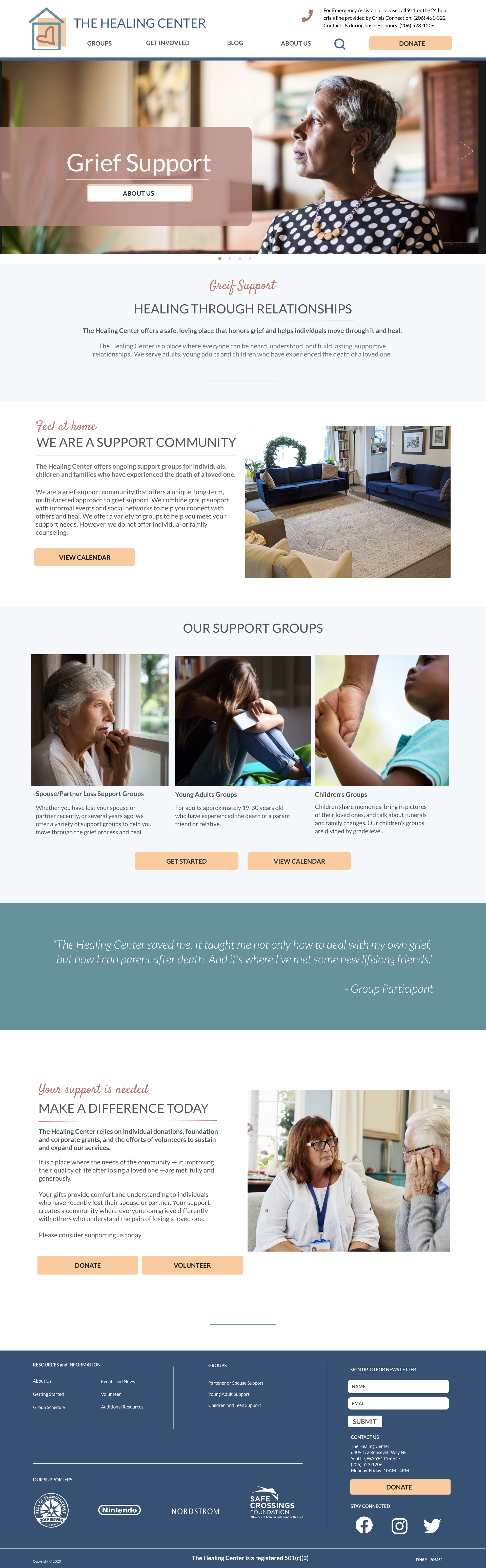 The Healing Center is such a vital resource for the community, and I was excited to work on this project because I wanted to help them reach their audience with a professional looking website and easy to find information to better serve their customers and volunteers. My design solution met the goals of the Healing Center design brief.